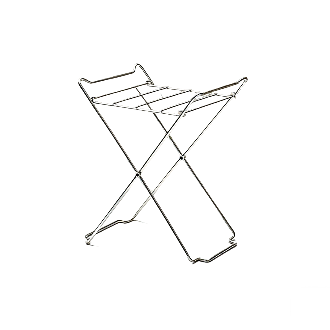 This "stainless steel stand" features a foldable X-shaped structure at its core, made from fine metal wires in a single design, combining a lightweight feel with practical support functionality. It is a highly portable item that maximizes space utilization.Made from stainless steel, the thin-line design is lightweight and not bulky. The X-shaped folding structure can be flexibly expanded or collapsed, forming a stable platform for items when opened, suitable for placing tableware, small items, toiletries, etc. When folded, it becomes compact, making it easy to store or carry, suitable for various scenes such as the kitchen, bathroom, or camping.It fits minimalist and portable lifestyle spaces. Its open design does not take up much visual space, serving as both a practical holding stand and a space-saving storage tool. Whether temporarily holding tableware in the kitchen, storing toiletries in the bathroom, or serving as a small platform during camping, it balances practicality and portability, making it a useful item for increasing spatial flexibility.