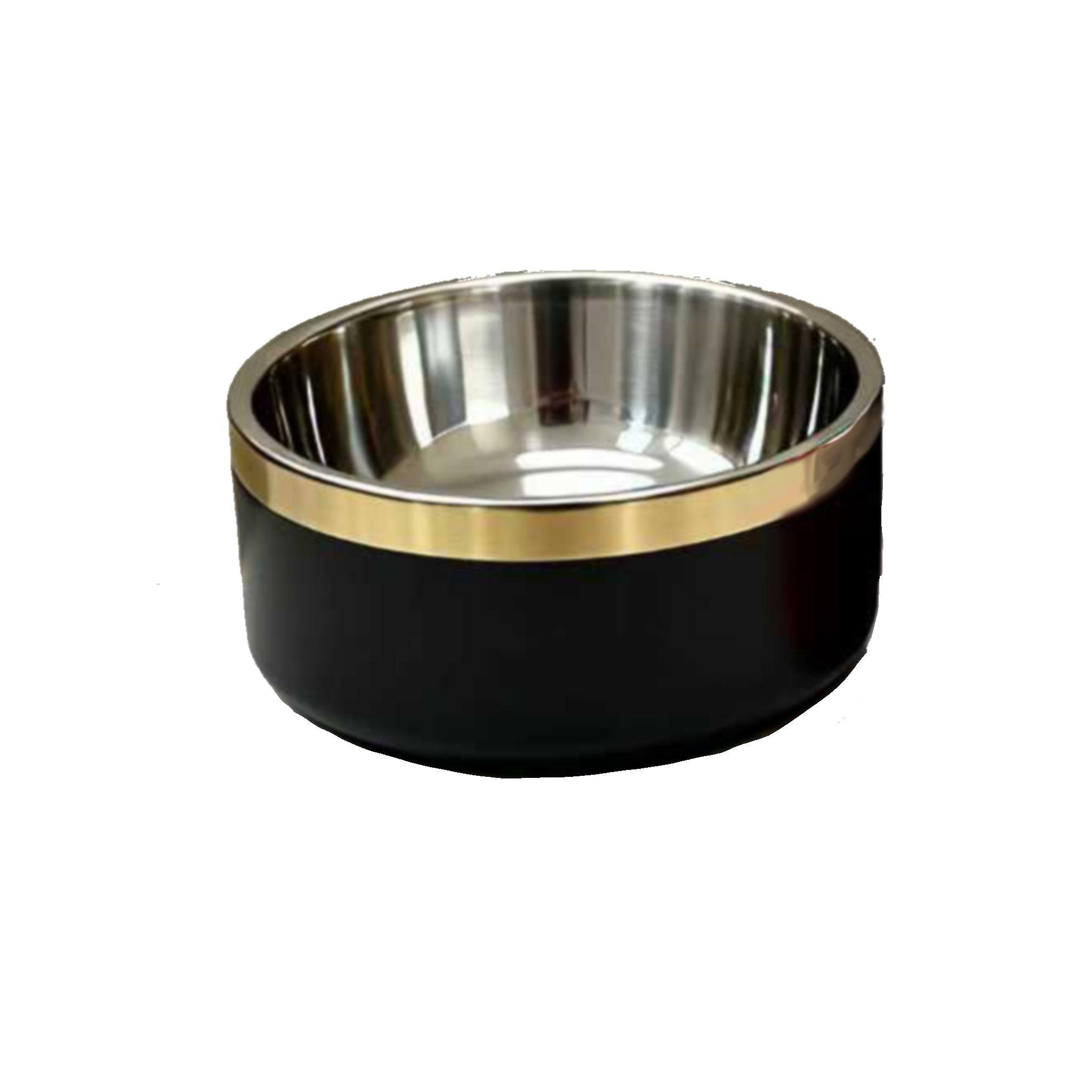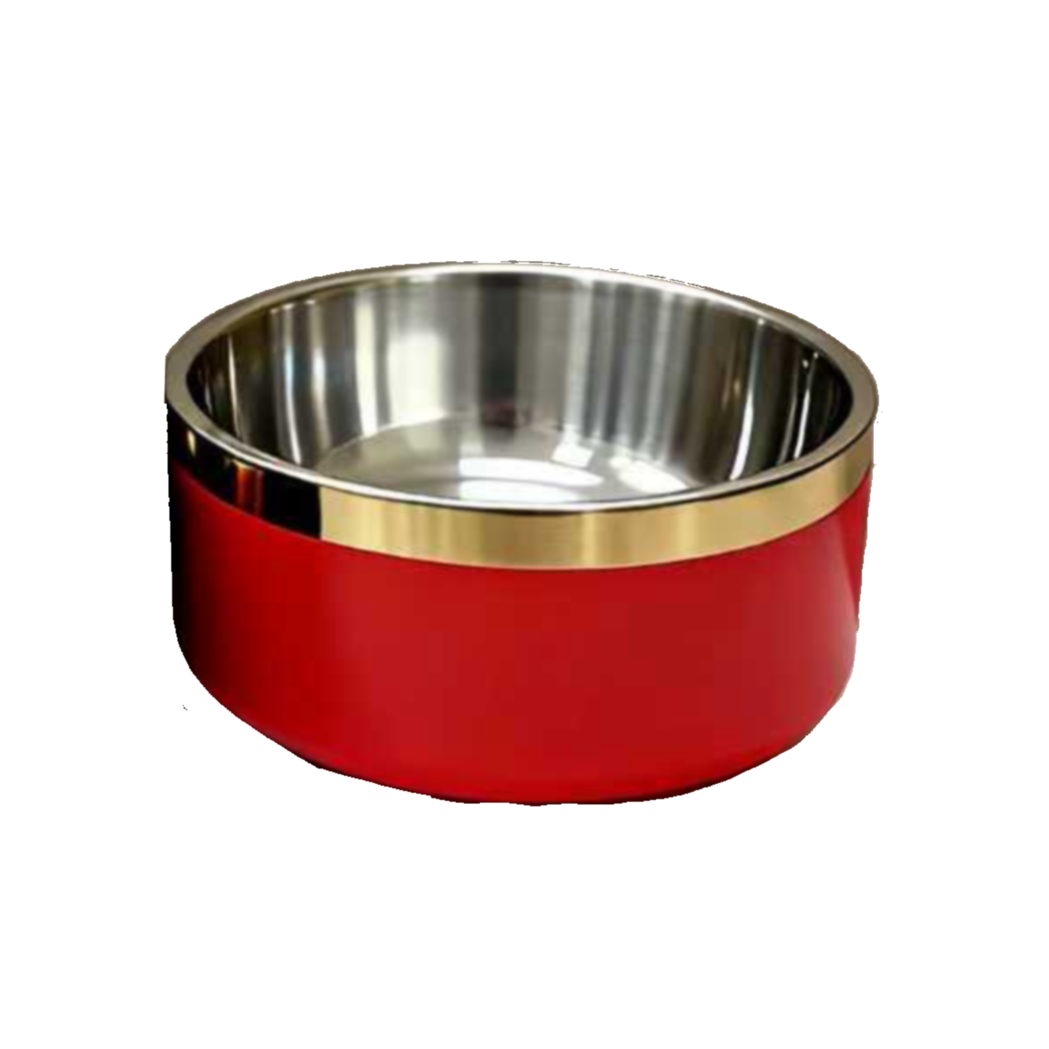 This "Solid Color Stainless Steel Pet Bowl" features a design highlight of black and red with gold trim, and an inner lining of food-grade stainless steel, blending a luxurious look with practical functionality, making it a refined product for pets.The outer layer of the bowl is made of matte solid color material, paired with gold trim on the rim, offering a simple yet slightly luxurious feel; the inner layer is seamlessly formed stainless steel, smooth and easy to clean, preventing bacterial residue and ensuring pet eating hygiene; the bottom has a non-slip design for enhanced stability, preventing the bowl from tipping over during meals, suitable for daily use by cats and small to medium-sized dogs.It fits a minimalist, luxurious home style, and the dual-color set can be used separately as a food bowl and a water bowl, serving not only as practical dining utensils but also as a refined decor accent in the space. Whether for daily feeding that balances hygiene and aesthetics, or as a pet product that elevates the quality of life, it combines both practicality and sophistication, making it a quality item for enhancing your pet's lifestyle.