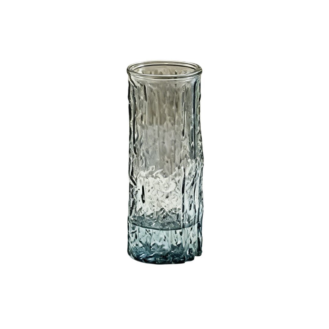 This 'Wood Grain Glass Bottle' features a design centered on imitating natural wood grain texture, available in transparent, black, and gradient blue finishes, blending natural aesthetics with practical functionality, and naturally creating a relaxed atmosphere.The bottle is made of high-borosilicate glass, with a surface that replicates delicate wood grain patterns, presenting a natural and rustic texture when light refracts through it; the transparent version clearly showcases floral arrangements, the black version exudes a calm and steady style, and the gradient blue version adds a fresh layered effect. Its slender cylindrical shape accommodates various flower stems, suitable for fresh cut flowers, dried branches, or hydroponic plants, making it ideal for living rooms, studies, and other settings.It complements wooden and minimalist home decor, serving both as a practical floral container and a natural decorative element in any space. Whether displaying eucalyptus leaves, rhododendron branches, and other forest-style floral materials, or simply as an empty bottle adornment on a desk, it balances aesthetics with functionality, making it a perfect natural item to enhance a relaxed lifestyle.