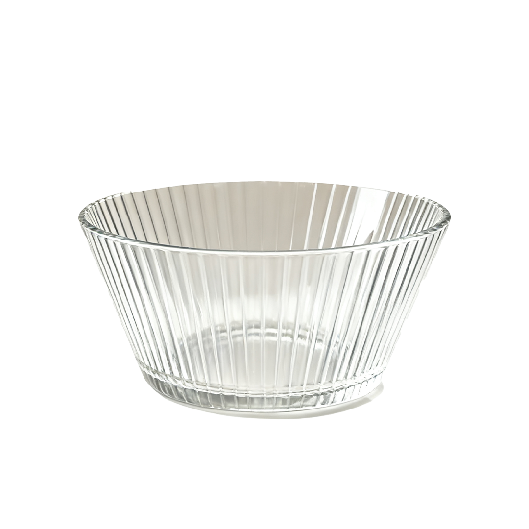 This "Striped Glass Bowl" features a minimalist vertical stripe design as its core, paired with transparent high-borosilicate glass, blending practicality with a fresh aesthetic and naturally creating a clean and refreshing living atmosphere.The bowl is made from high-quality high-borosilicate glass, which is clear and transparent, allowing the contents to be seen clearly. The evenly distributed vertical stripe texture not only enhances grip to prevent slipping but also adds depth to its simple shape. The bowl's rim is smooth and rounded, finely polished so it won't cut your hands, and its moderate depth and capacity make it suitable for salads, cereals, soups, fruits, and more, accommodating both everyday meals and elegant plating needs.The transparent material and classic stripes fit well with various home décor styles such as Nordic and minimalist. It serves both as a practical dining utensil and a decorative highlight for the table. Whether for daily use to enhance dining quality or for entertaining friends and family to add a sense of ritual, it balances aesthetics and practicality, making it a versatile item that enhances daily happiness.