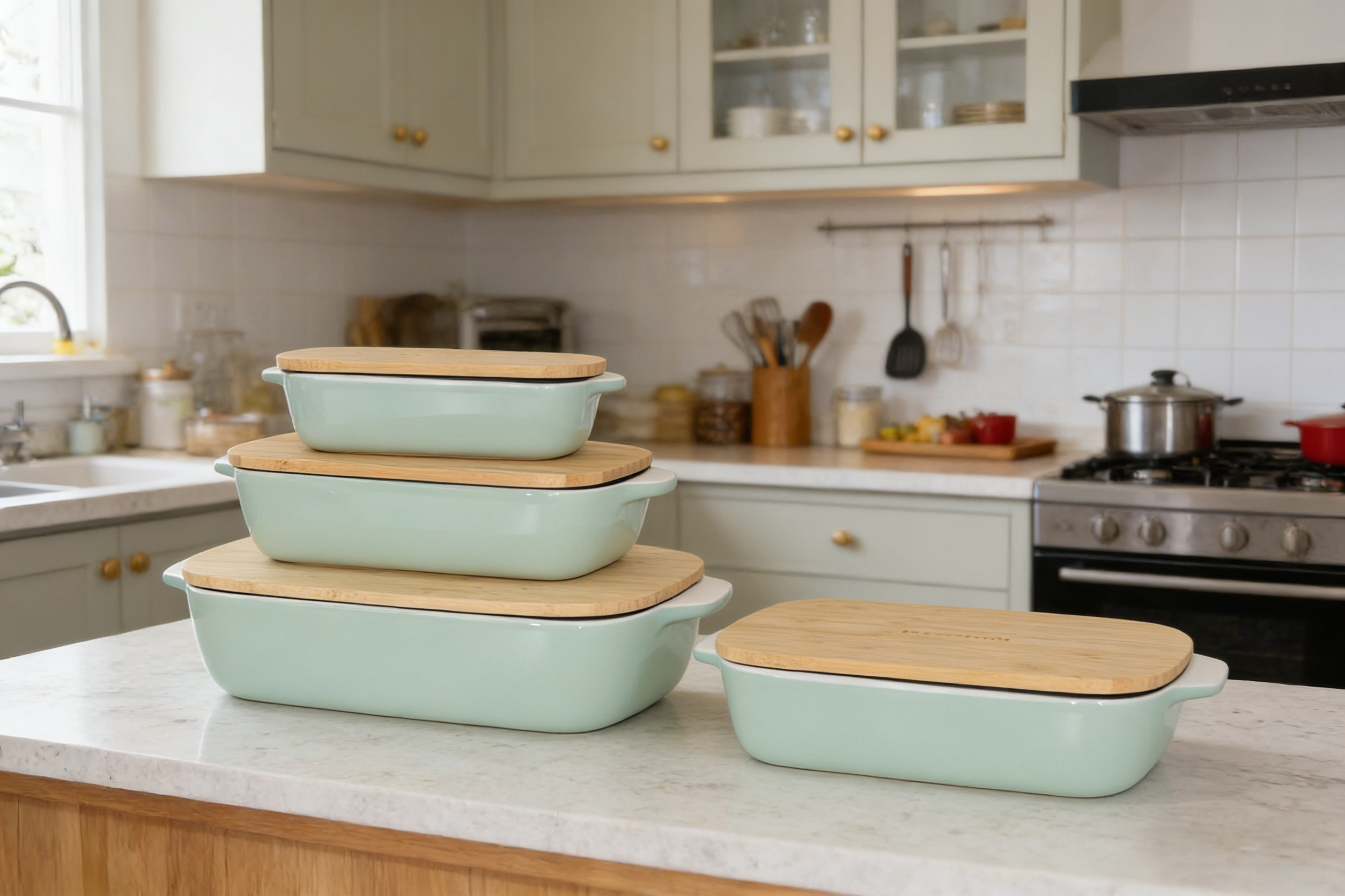 This Vintage Solid Color Ceramic Double Handle Baking Pan combines classic design with modern craftsmanship, presenting a minimalist yet timeless aesthetic style. Made of high-quality high-temperature ceramic material and finely fired, it has good heat resistance and thermal conductivity. It can be directly taken out of the refrigerator and put into the oven for use, suitable for various cooking scenarios. The solid color design highlights the retro charm, with a matte glaze texture that is delicate and smooth in color. It not only has strong practicality, but also adds an elegant atmosphere to the dining table. The symmetrical dual ear design on both sides makes it easy to grip, and the heat-resistant design makes it safer and more convenient to pick up. Whether baking pizza, grilling meat, or serving salads and fruits, it is an ideal choice for kitchen cooking and table setting.